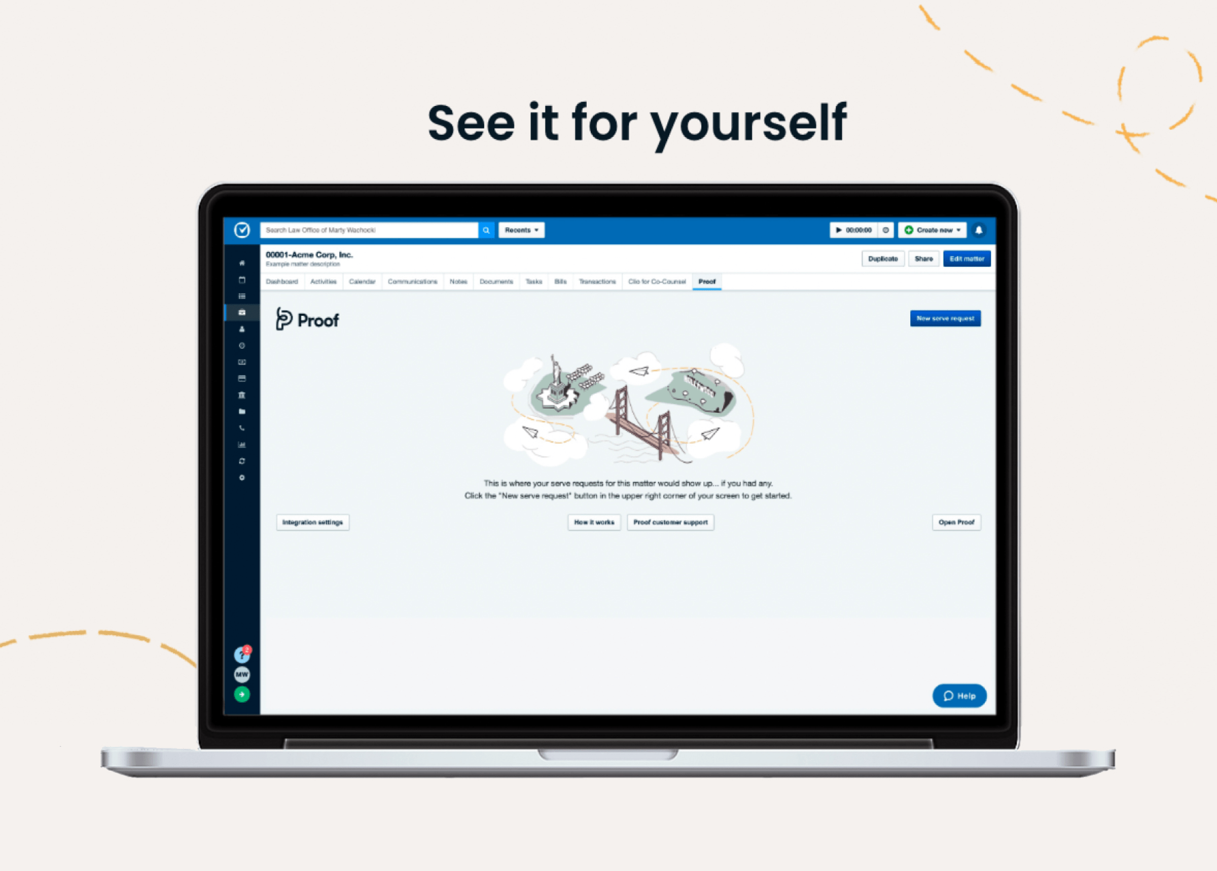 Send and manage your serve requests directly within Clio in the Proof tab under all of your matters. Why use an external platform or vendor if you don't have to?